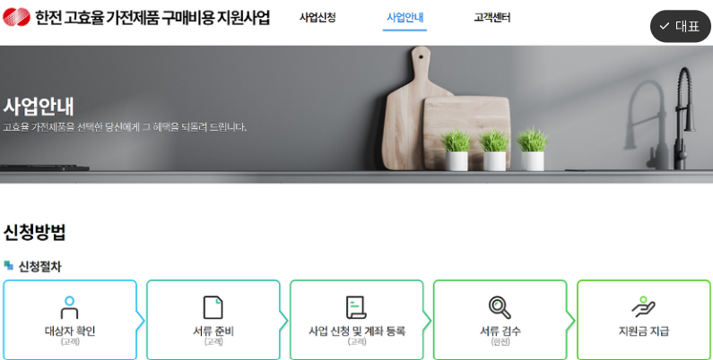 | 지원품목 | 11개 품목: 냉장고, 김치냉장고, 에어컨, 세탁기, 전기밥솥, 유선진공청소기, 공기청정기, TV, 제습기, 의류건조기, 식기세척기 |
