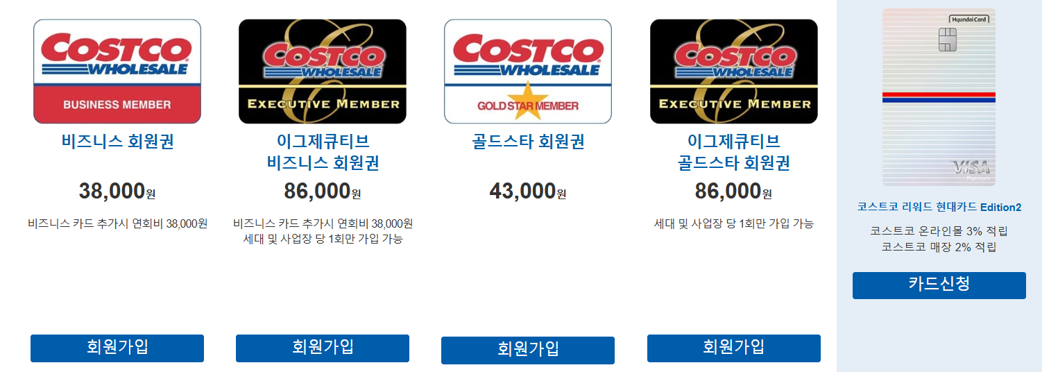 코스트코 회원권은 종류별로 연회비와 혜택, 가족카드, 모바일 발급 등 편의가 다양하며