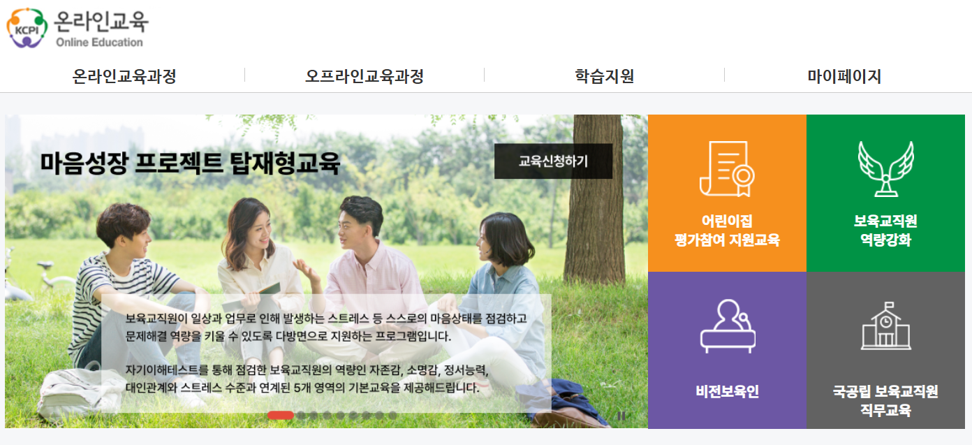 한국보육진흥원 온라인교육 홈페이지는 어린이집 교직원, 원장, 실습생 등