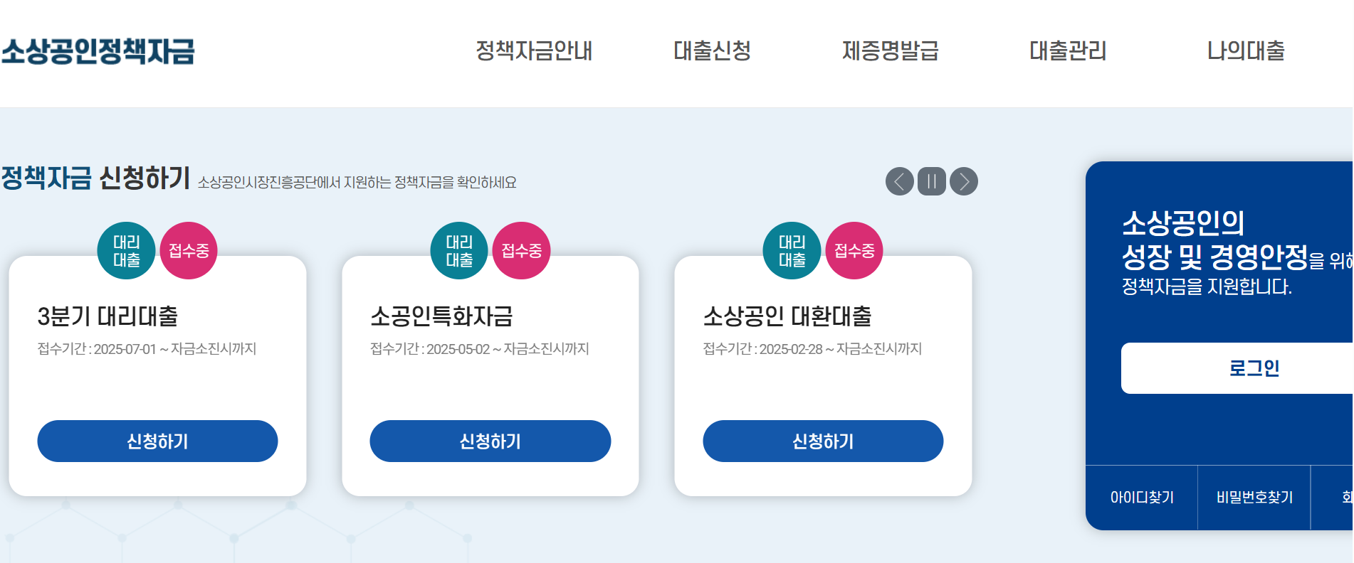 소상공인 정책자금 누리집 홈페이지 바로가기